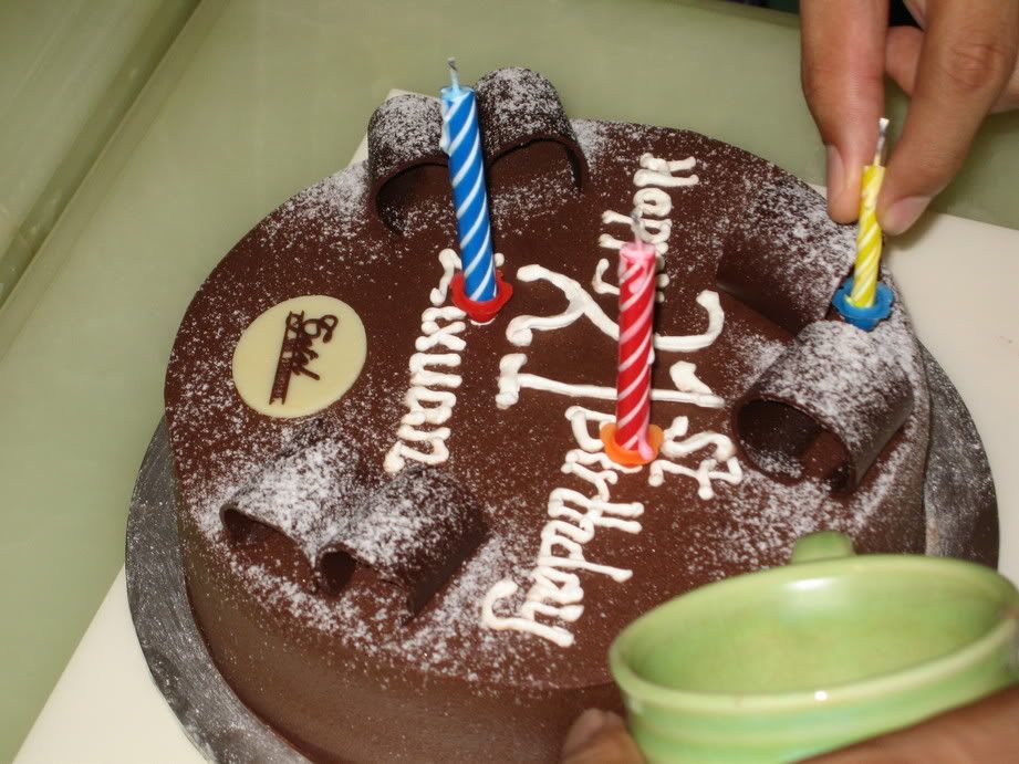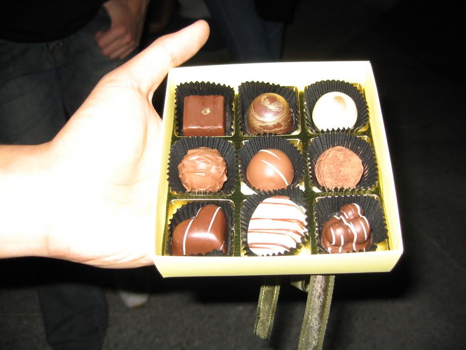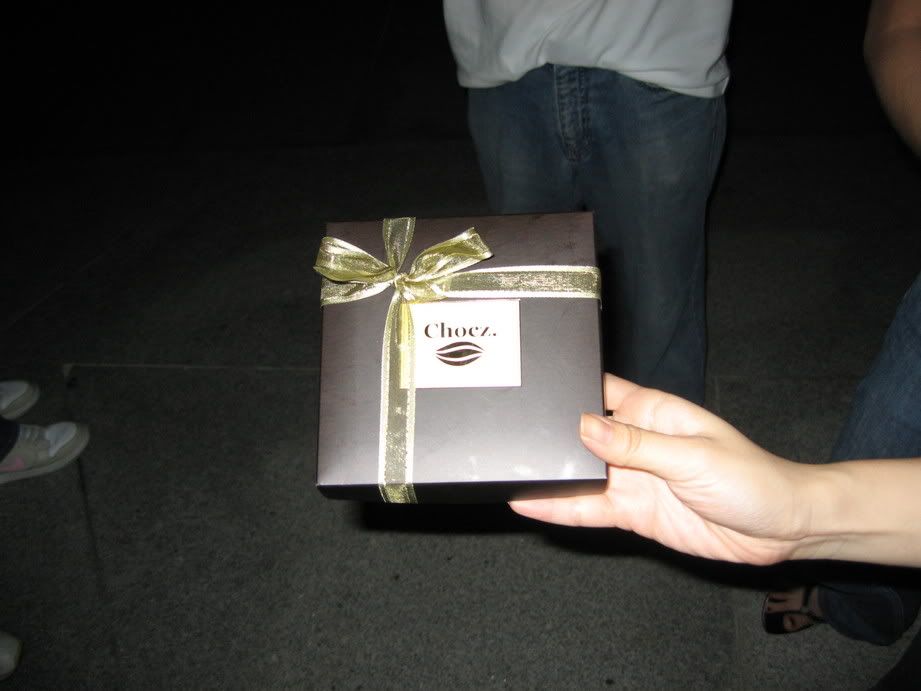 celebrated dear dears advance 21st birthday at the vienna yest..we hv seafood buffet..yumm..the cake session..its french chocolate ganache..a beautiful xmas tree..a live jazz band at the esplanae..a yummy chocz from jac and her beau ben for dear dear..followed by drinks at the axis bar..nice place..